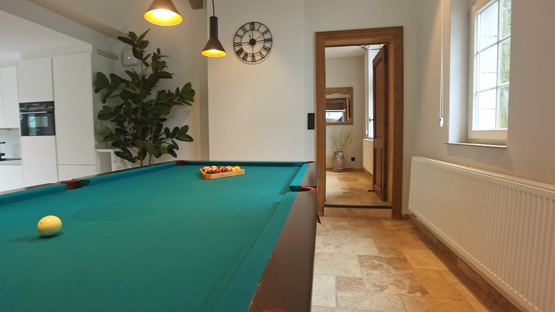 Die alten Holzböden, die Holzbalken und die für die Region charakteristischen Backsteinmauern erzählen die Geschichte dieses Hauses und schaffen eine gemütliche Atmosphäre. Das Wohn- und Esszimmer mit dem zentralen Kamin verstärkt diese gemütliche Atmosphäre und lädt zum Entspannen ein. Die moderne, helle Küche mit einer zentralen Insel und hochwertigen Geräten bietet den idealen Raum für gesellige Momente rund um gute Mahlzeiten. Für totale Entspannung sorgt die Sauna, während die Wellnessecke mit Yogamöglichkeiten Sie den Alltag vergessen lässt. Eine kleine Kaffeebar samt Senseo und Nespresso (Vertuo-Modell) Maschinen lädt zu gemütlichen Stunden in guter Gesellschaft ein. Familien können sich am Billardtisch spannenden Herausforderungen stellen. - Gute Laune ist garantiert !