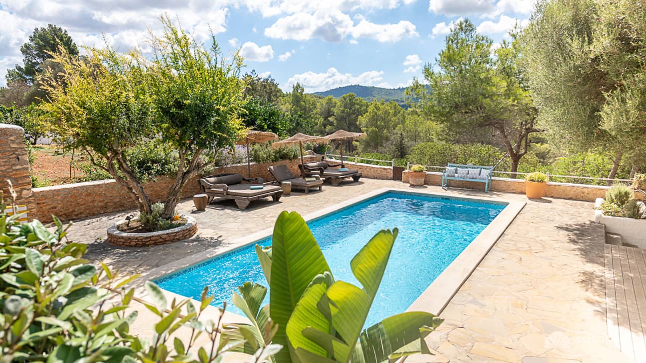 The finca is situated in a quiet rural area in western Ibiza, between the villages of Can Tomás and San Rafael, specifically in Sant Antoni de Portmany. This location allows guests to enjoy the serenity of the natural surroundings while remaining close to some of the island’s most well-known spots.