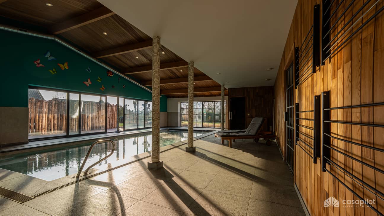Domaine privé avec deux maisons de vacances, saunas, hottubs et piscine intérieure chauffée, à proximité de Turnhout en Flandre.