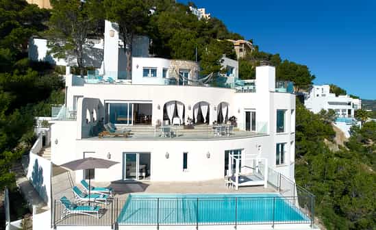 Villa luxueuse et exclusive sur trois niveaux avec une vue imprenable sur la mer et une piscine à débordement à Capdepera, Majorque.