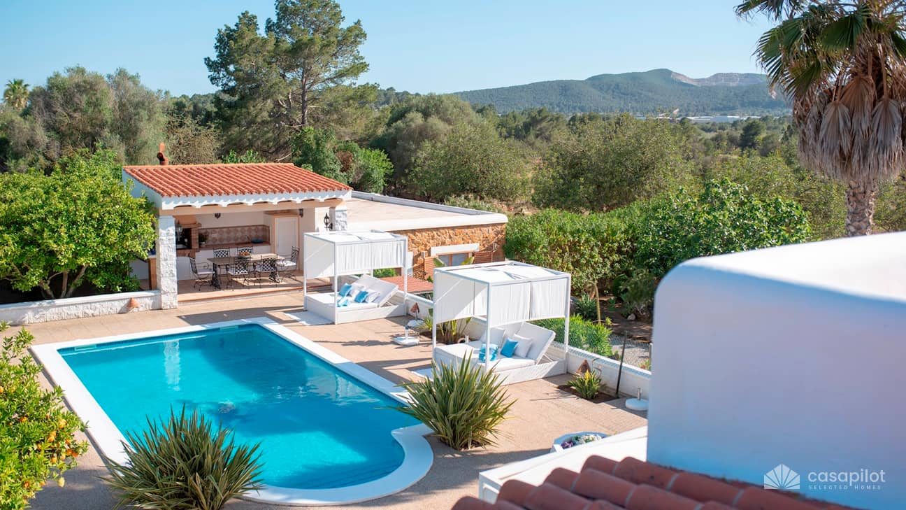Prachtige moderne villa met privézwembad, tuin en Balinese bedden in San Rafael, Ibiza.