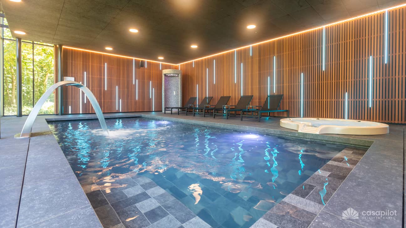 - Airconditioning Zwembad priveZwembad binnenJacuzziStoombadSaunaInfrarood saunaMultijet douchePing-PongBilliardSpeeltuinGezelschapsspellenJacuzzi binnenZwembad met verwarming